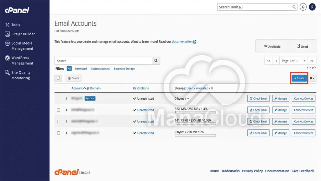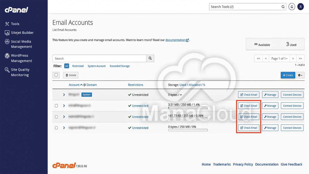 مدیریت ایمیل‌های ساخته‌شده در سی پنل